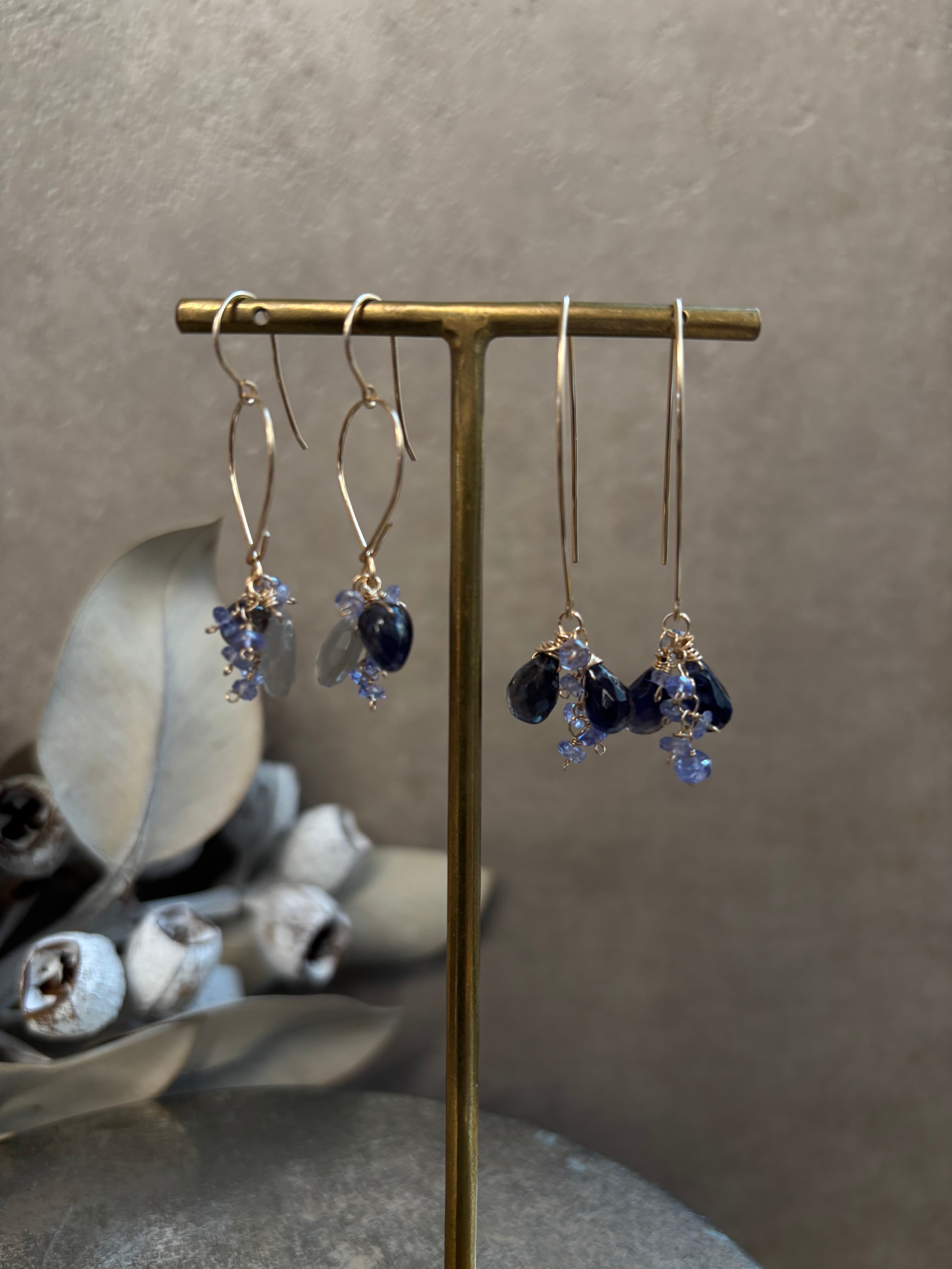 《14kgf》タンザナイトとアイオライトのロングフックピアス